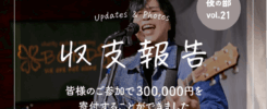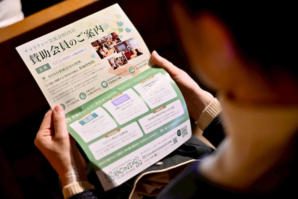 第5回 昼のBOND交流会 収支報告 2025年12月3日 2025/12/3 第5回 昼のBOND 交流会にご参加いただきました皆様誠にありがとうございました。 項目金額参加者(3,000円) 39名117,000円お弁当(1,000円) 15名15,000円 総合計 132,000円上記金額を以下3団体へ寄付することができました。 ⚫︎イーデリ(ホームレス支援) ⚫︎国際ビフレンダーズ(自殺防止支援) ⚫︎ひとりぼっちにさせへんプロジェクト(いじめ、引きこもり、更生支援) 今後とも変わらぬ支援、ご参加よろしくお願い申し上げます。 前の記事第20回 夜のBOND交流会 収支報告次の記事 第21回 BOND交流会 収支報告